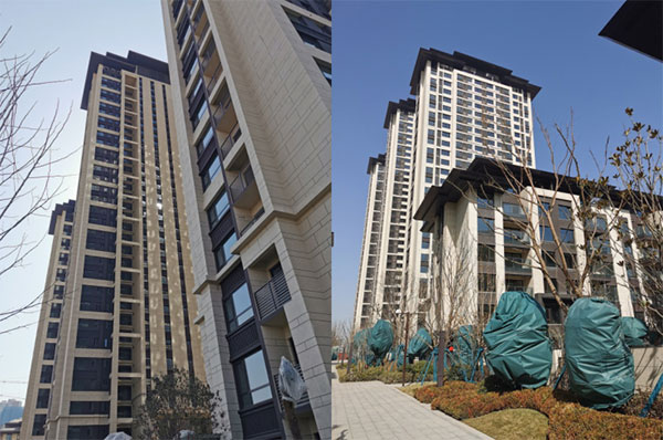 目前,北区高层施工区域中,14#、21#楼二层屋面结构、外窗框均已完成,20#楼屋面保温、找平层完成,室内公共部分装修已完成至31层;15#楼外窗玻璃安装完成。