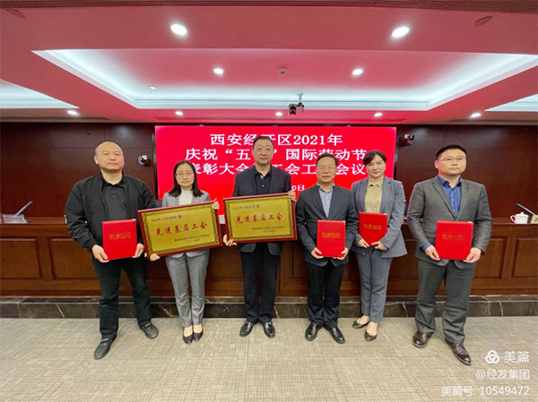 为树立榜样、表彰先进,由经开区工会委组织召开的经开区2021年庆祝“五一”国际劳动节表彰大会暨工会工作会议于4月30日下午在经发集团举行,经发地产工会主席雷雄让同志被授予“西安经开区2019-2020年优秀工会工作者”荣誉称号、销售分公司总经理罗娜同志被授予“西安经开区2019-2020年优秀工会积极分子”荣誉称号。