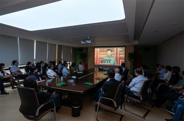 7月1日,经发地产党支部全体党员及入党积极分子集中收看中国共产党成立100周年庆祝大会盛况,聆听中共中央总书记、国家主席、中央军委主席习近平重要讲话。参会人员倍感振奋,备受鼓舞。