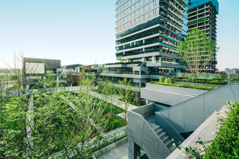 项目遵循绿建标准,建筑节能率达65%,配备LOW-E双层中空玻璃幕墙,降噪减能耗,更有多项楼宇智能化系统加持,将环保和智能科技完美结合并融入日常。白桦林FIC项目以地标姿态,创造集办公、生活、社交、娱乐于一体的“微缩城市”,激发城市、园区与人的美好连接。