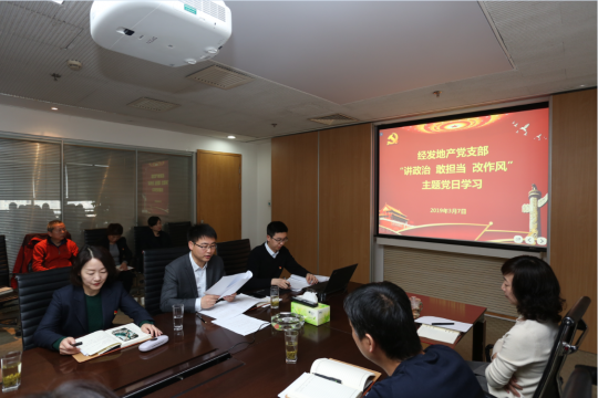 3月7日上午11时,经发地产党支部在公司第一会议室召开“讲政治敢担当 改作风”主题党日学习会,支部全体党员、入党积极分子,公司高管、各部门负责人40余人参加学习讨论。