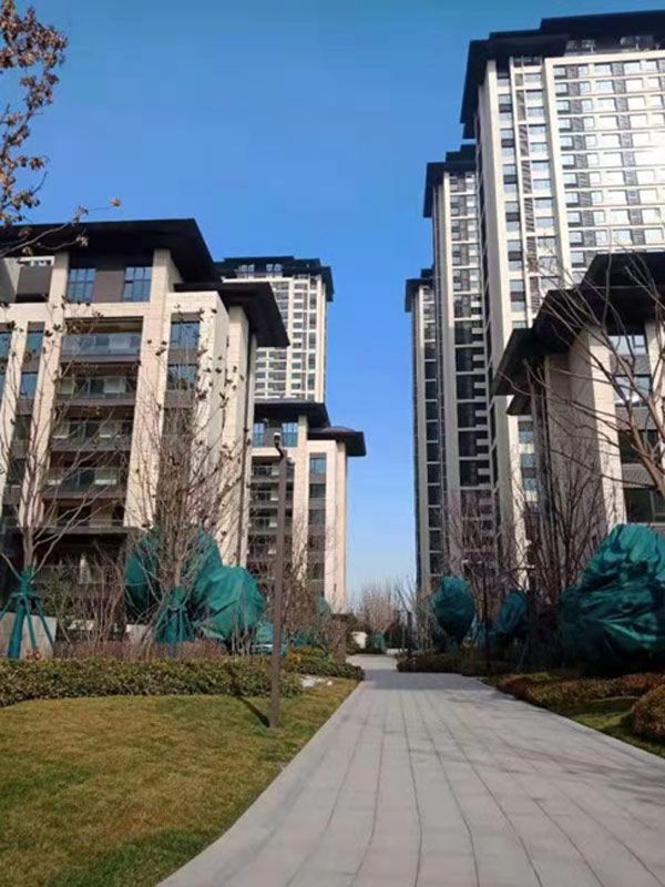 目前,项目北区花园洋房1—13号楼外立面已全部完成,室外景观栽植工作完成,目前已为现房状态实景呈现。北区高层施工区域中,除交付楼栋以外,14#、21号楼斜屋面结构已经完成,外墙外保温工作现已完成80%,15号楼外立面装修完成,20号楼目前正在进行外立面真石漆喷涂工作,约完成80%,即将全部完成。