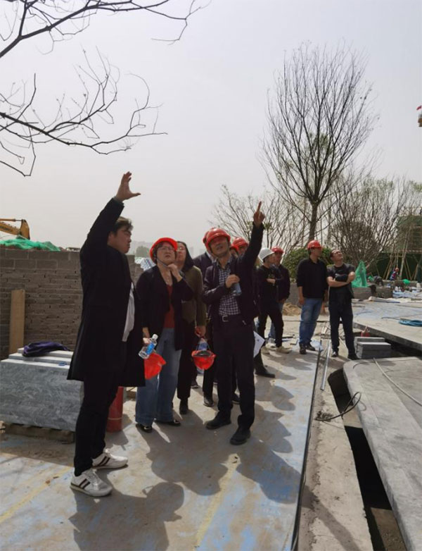 4月29日,达观国际建筑设计事务所创始人、设计总监凌子达在经发地产副总经理雷雄让、设计总监周文霞的陪同下,前往白桦林漫步销售中心建设现场,对项目建设情况进行现场评审。