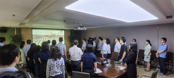 7月1日,经发地产党支部全体党员及入党积极分子集中收看中国共产党成立100周年庆祝大会盛况,聆听中共中央总书记、国家主席、中央军委主席习近平重要讲话。参会人员倍感振奋,备受鼓舞。