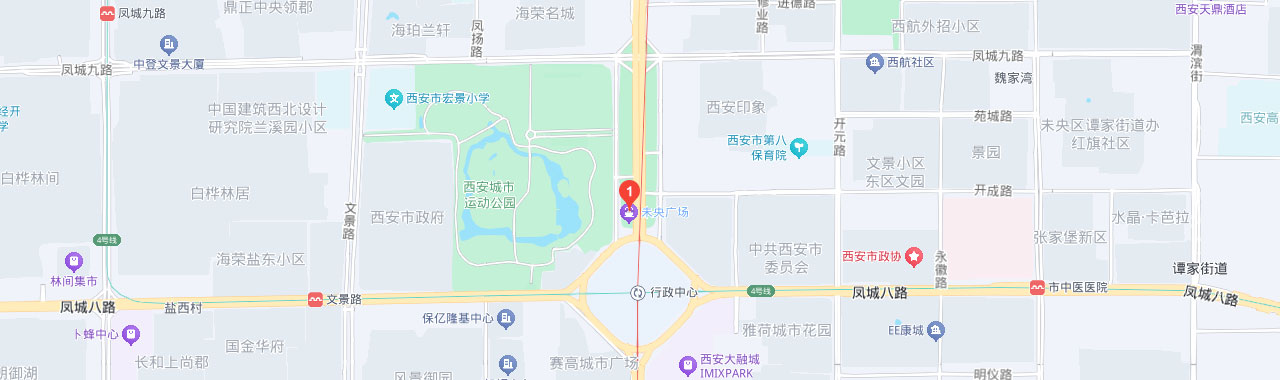 西安未央广场南北长900余米, 宽132~340米, 总面积16万平米, 是北城地区面积最大、配套设施最全、环境最为优美的城市绿地广场,是周边市民重要的区面积最大、配套设施最全、环境最为优美的城市绿地广 场,是周边市民重要的休闲娱乐场所,也是西安地铁二号线、四号线的大型換乘枢纽站。